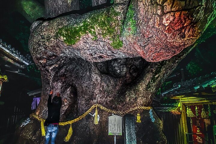 A great temple with thousands of Japanese traditional dolls sitting literally everywhere, a shrine worshiping an enormous 1000-year-old camphor tree in an industrial area, and nostalgic paths of temples lit by countless lanterns at night